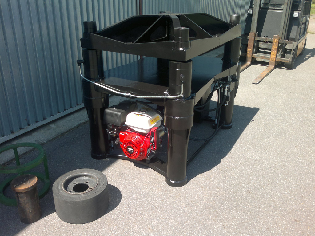 Provádíme montáž plnopryžových kol manipulační techniky mobilním lisem vlastní konstrukce…